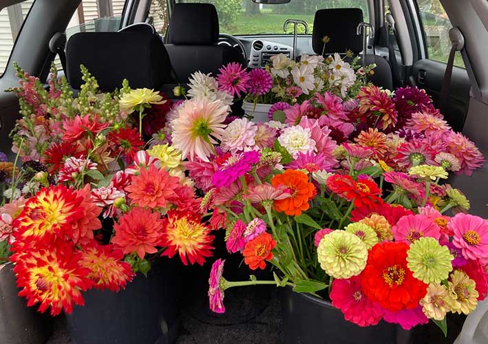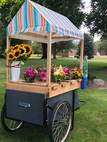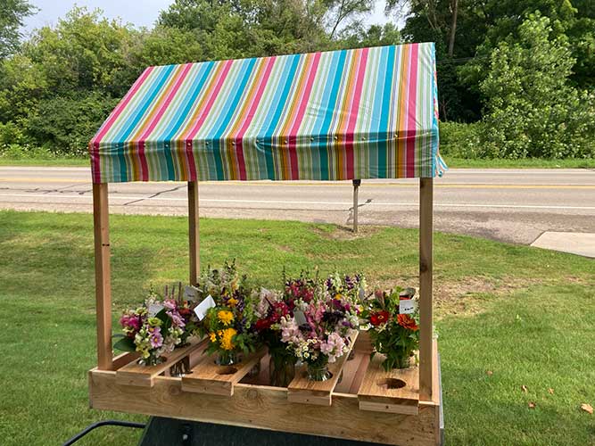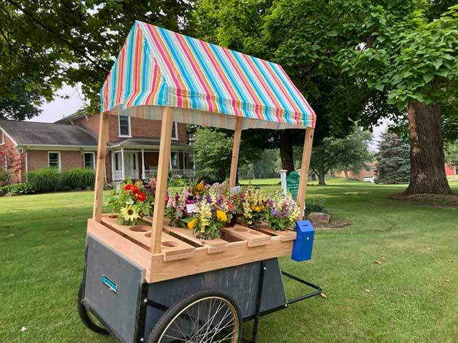 Due to the kindness of a wonderful friend (who happens to live in a great location) our cart is located on the front yard of a PRIVATE residence*. They have done us a great kindness and we would appreciate you please respect their privacy and their property so we can continue to spread the JOY of flowers!